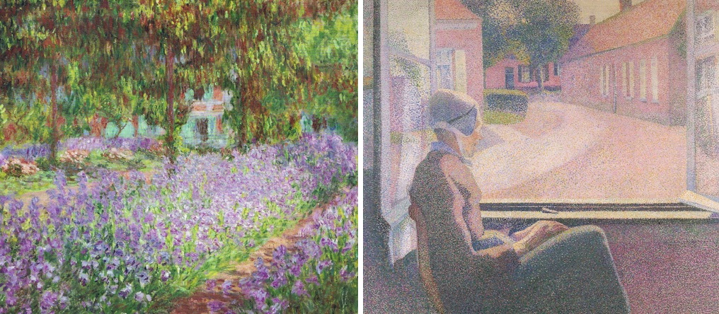 De gauche à droite : Le Jardin de l’artiste à Giverny, Claude Monet, 1900, Paris, musée d’Orsay; Femme à la fenêtre, Henry Van de Velde, 1889, Anvers, Musée royal des Beaux-Arts.