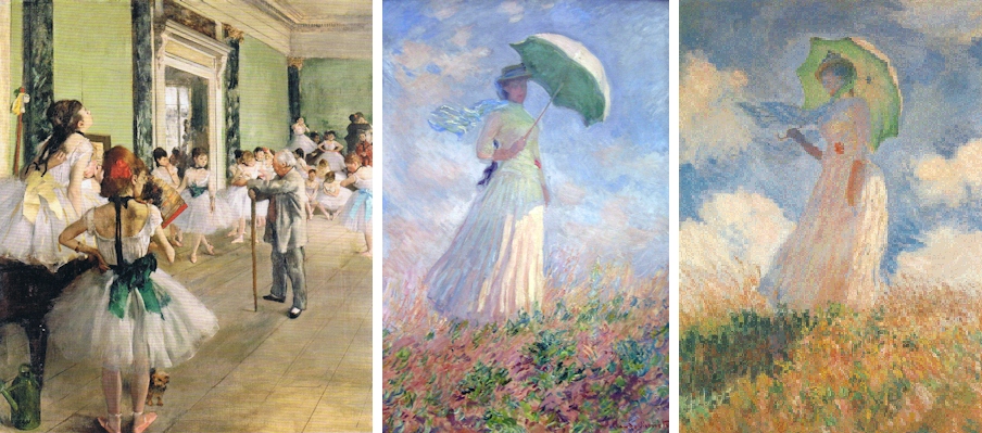 On retrouve ces volumes exubérants dans Un dimanche après-midi à l’île de la Grande Jatte de Seurat, dans Femmes au jardin de Monet et dans les nombreux portraits de femmes peints par les impressionnistes.