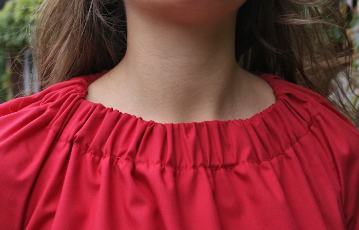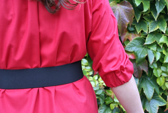 Maintenant que les présentations sont faites, parlons chiffons ! A la base, j’avais prévu cette robe pour moi, très égoïstement. Le patron provient du très beau livre « Jolies robes toutes simples » dont je vous ai déjà parlé ici. Il s’agit du modèle S. J’avais envie d’un peu de couleur, d’où le rouge (bien plus rouge en vrai, mais lumière de chiotte typiquement belge le jour des photos).