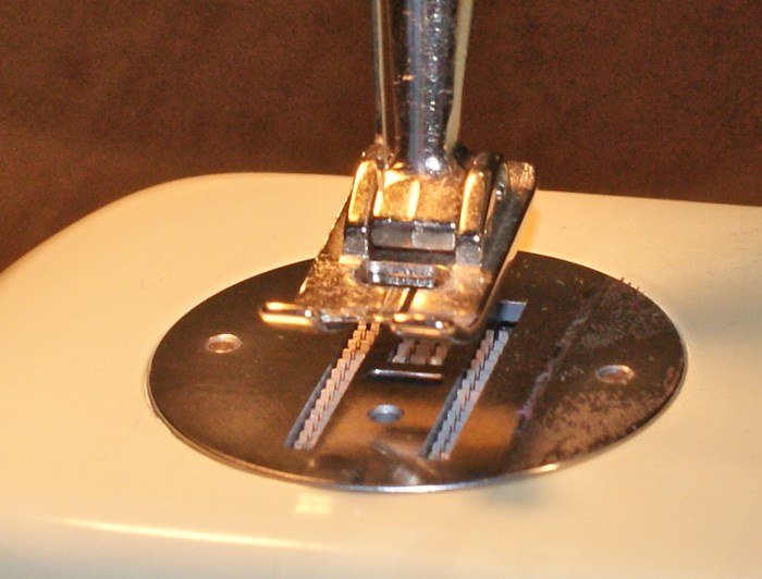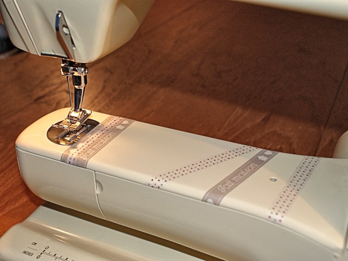 Il lui manque toutefois un petit quelque chose pourtant bien pratique : une petite plaquette graduée indiquant les centimètres des valeurs couture. Toutes les nouvelles machines en sont dotées. Apparemment, à la fin des années 50, on faufilait encore toutes les pièces et on s’en passait donc. J’aime le rétro, le vintage, toussa toussa… Mais quand même, il y a des limites. Le faufilage se passera de moi.
