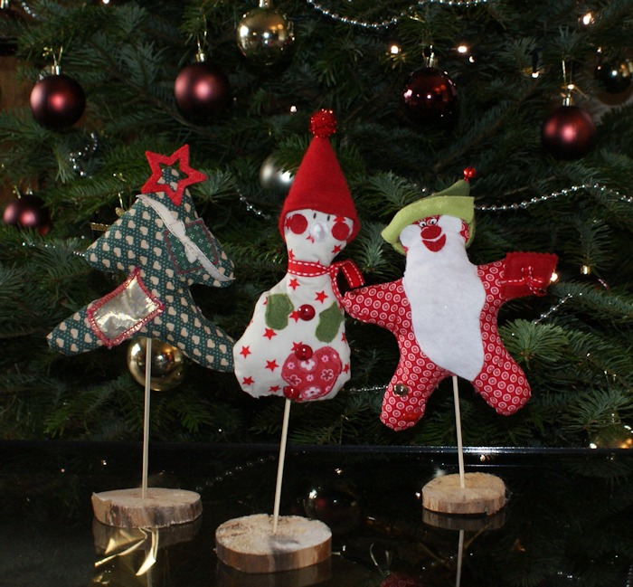J’ai réalisé ces petites bébêtes lors d’un atelier chez les Cousettes (mon QG). Leur créatrice, Aurore, a baptisé son bonhomme de neige Olaf. Pour rester dans le thème Scandinavie, j’ai choisi d’appeler le mien Asbjörn (ça veut dire « l’ours des dieux »… aucun rapport, mais poétique). L’identité des autres tombe sous le sens. Vous avez bien entendu reconnu Mon Beau Sapin et Petit Papa Noël.