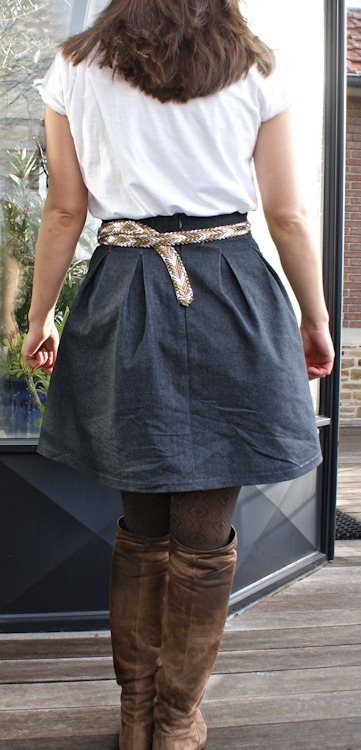 Le denim a été acheté au Spectacle du tissu de Namur. Pour les poches, j’ai récupéré un reste de coton que j’avais utilisé pour ce projet.