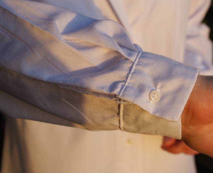 Alors oui, c’est vrai, j’avais déjà cousu une chemise (ici), mais en total free style : bye bye les fentes de manche, col monté de manière fort peu catholique… Ici j’étais surveillée par l’œil de Moscou (ma prof). Impossible de bidouiller. C’est pourtant pas faute d’avoir essayé!