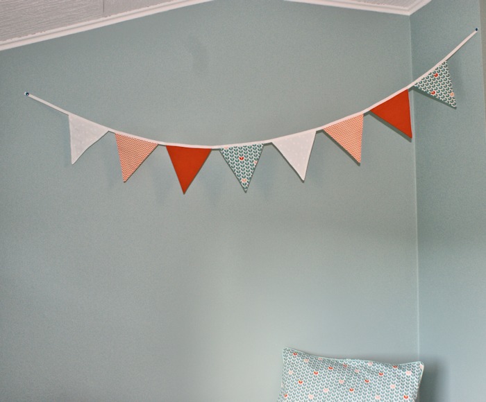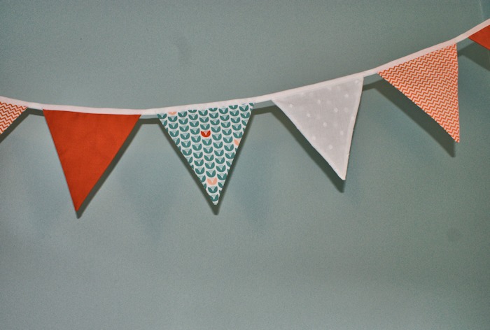 J’adore les guirlandes fanions. Il n’y a rien de mieux pour habiller et égayer une chambre d’enfant. Et puis c’est vraiment le projet parfait pour recycler les chutes.