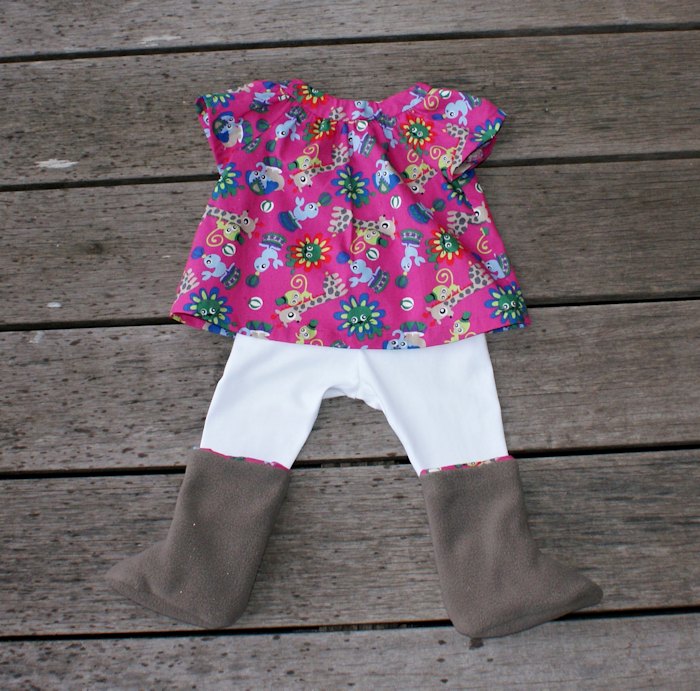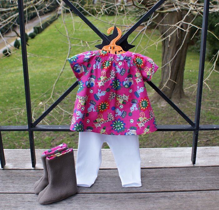 Tenue pour bébé fille, blouse Alma, Go To Patterns Legging et bottes chaussons Petit Citron, par Laissons Lucie Faire
