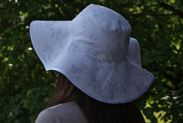 Pour rigidifier les bords, j’ai utilisé de la vliseline H250. J’ai thermocollé le tissu extérieur et la doublure, et il fallait bien cela ! Parce qu’une capeline avec les bords tout flapis, c’est pas chic !
