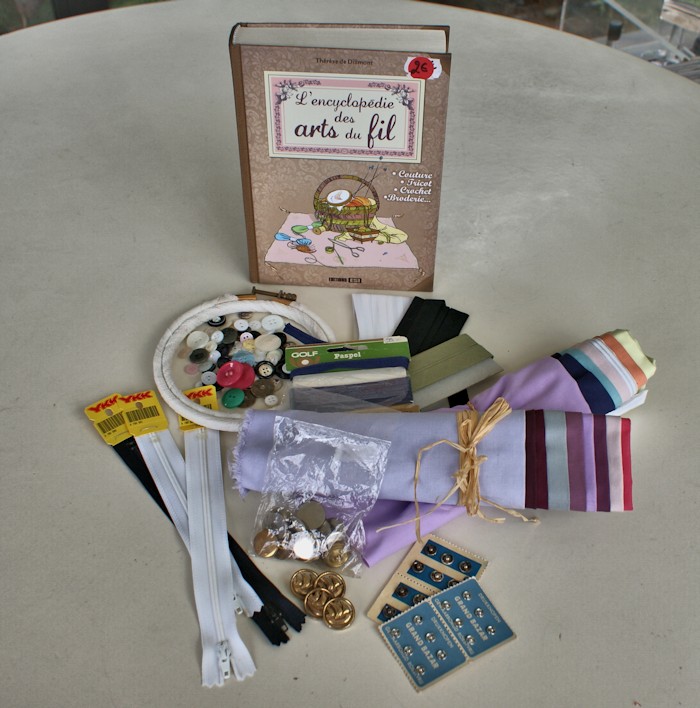 Une brocante spécial couture s’installe à 2 km de mon boulot ? Aussitôt dit, aussitôt fait, je rogne sur ma pause déjeuner (manger, un détail !) et j’y cours.