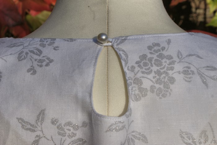 J’ai utilisé un lin beige et un coton bleu marine à petites étoiles blanches pour la doublure.