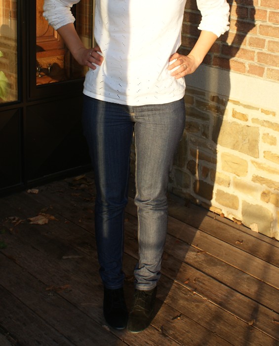 Il y a plusieurs années, j’ai cousu mes premiers pantalons, deux jeans que je vous avais montrés ici et ici. Je les ai beaucoup portés, été comme hiver, et il ne s’est pas passé une semaine sans qu’ils se retrouvent dans mon panier à linge. Malgré ça, ils ont tenu 5 ans, ce qui n’est pas rien. Et puis ils ont lâché en même temps : trou au genou pour l’un, à l’entre-jambe pour l’autre. Tout ça un peu après la naissance du Doubitchou.